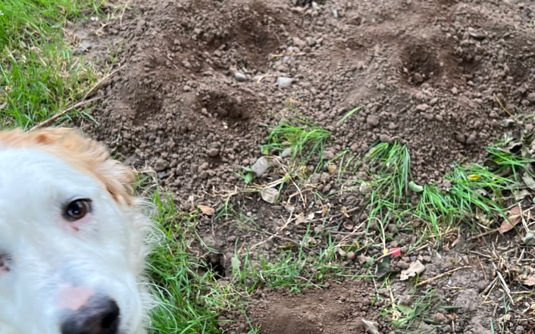 Smash cut, two weeks later. My yard is starting to look like an artillery range. Fresh gopher mounds every morning and Cleo’s still obsessed. She keeps digging at the mounds and getting dirty. They are now less than 30 feet away from the garden. It’s time to start taking measures, so I reach out to our Home Services manager Ben. Ben tells me that because of their larger size gophers need the soil on the drier, rockier side for stability, (less cave-ins and what-not) and that sometimes if you irrigate the area well the gophers will move to more favorable conditions.